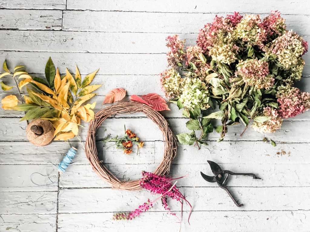I created a fall wreath of found flowers and leaves, and I lived my best life while doing it! Here’s how: